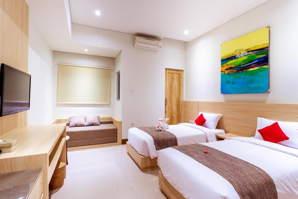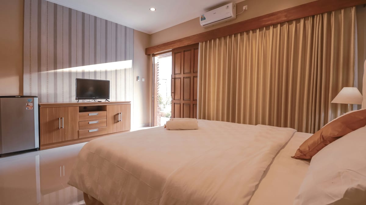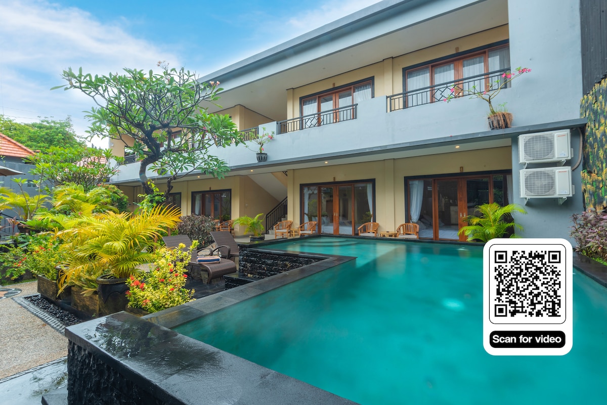 Enjoy a peaceful room with modern amenities, comfortable bedding, and a serene atmosphere. Our property features just four rooms, ensuring a private and intimate stay. Located close to Legian’s vibrant beaches, dining, and nightlife, it's the ideal base to explore while enjoying a relaxing escape. Book your stay now for the ultimate tropical getaway.