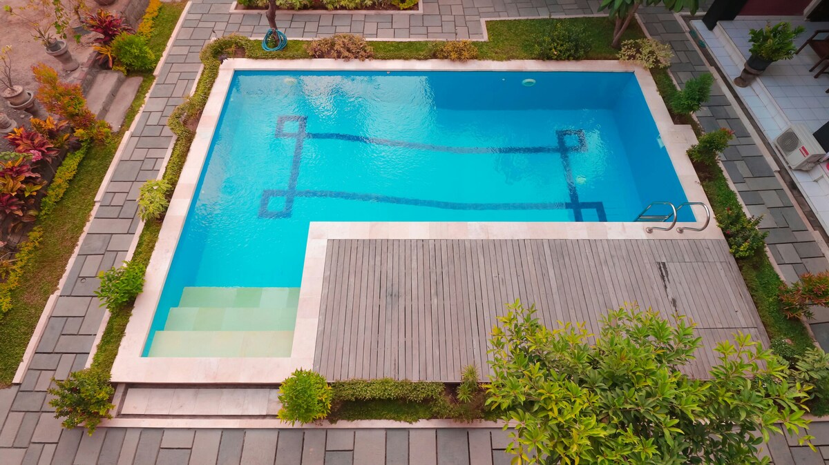 We are sharing the garden , swimming pool , living area , kitchen area and refrigerator with other guests . Please care for public facilities and keep it clean.