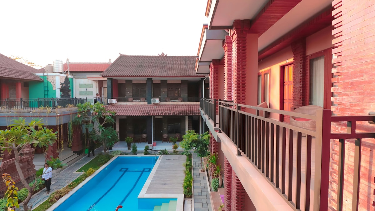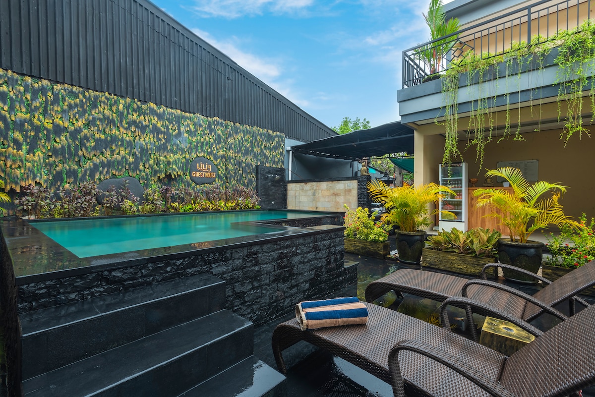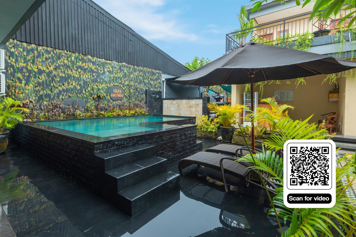 Welcome to our charming Guesthouse located in the heart of Legian! With budget-friendly prices, our property boasts a shared pool where you can cool off and unwind. Embracing a minimalist design with hints of Balinese flair, our guesthouse is adorned with lush greenery, creating a tranquil oasis for your stay.