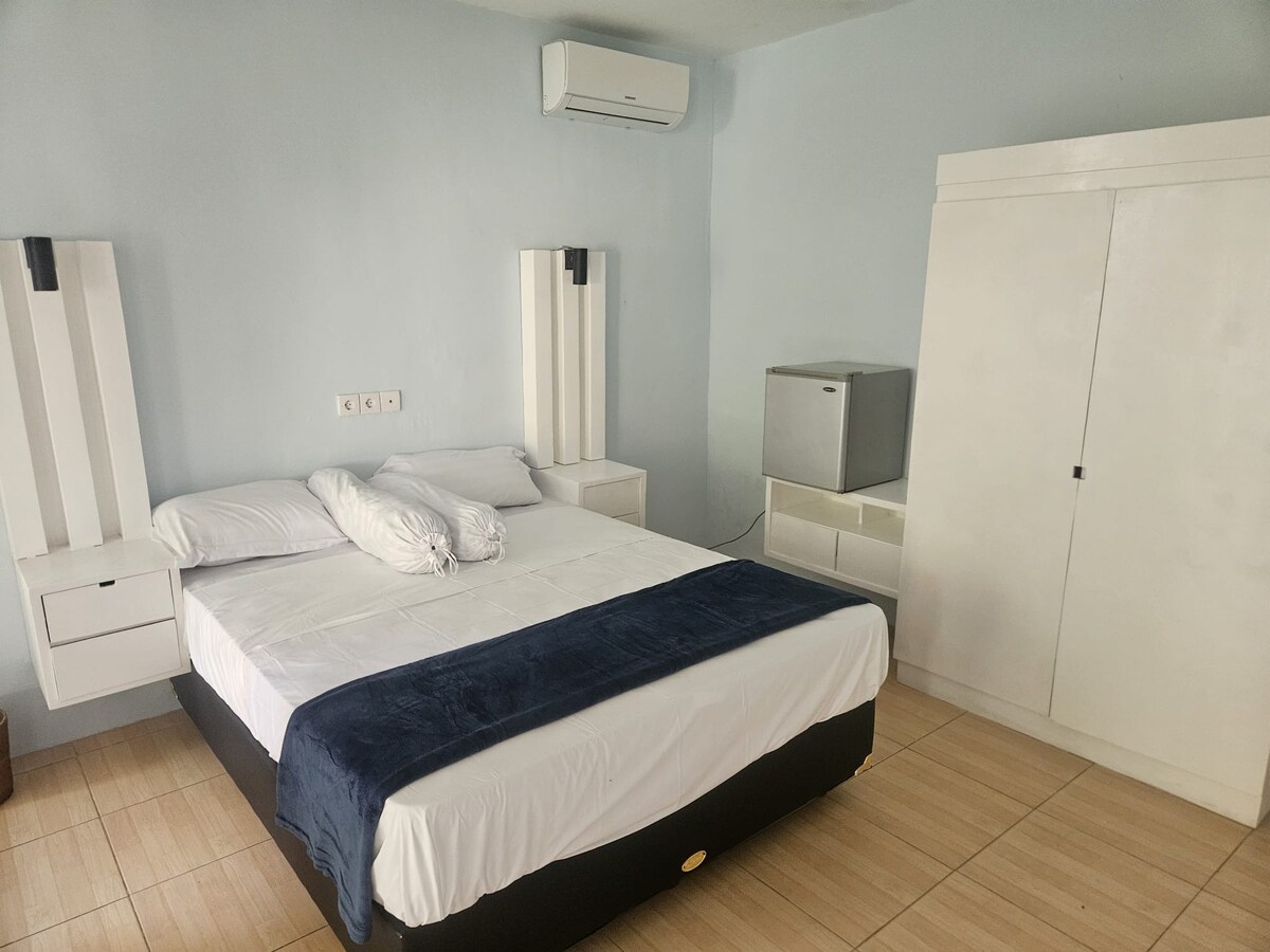 Discover comfort and simplicity at our Double Room in the heart of Legian. Featuring amenities such as air conditioning, a TV with local channels, and a cozy double bed, our room offers a relaxing retreat after a day of exploration. With its simple yet inviting design, guests can enjoy a relaxing stay. Plus, take advantage of our shared pool facility for added leisure during your visit.