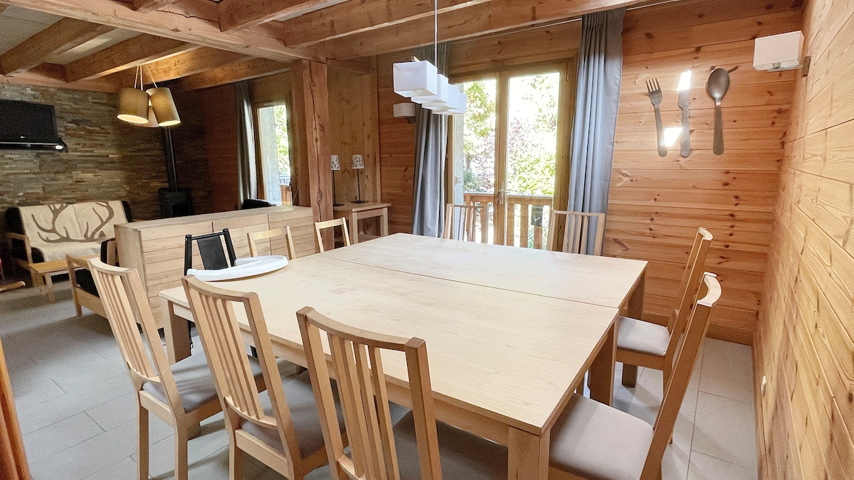 On the day side, the Aigle has an extended outdoor living space by a large wooden terrace with electric barbecue and a table to share meals in the sun. The kitchen is fully equipped (oven/MO, washing machine, dishwasher, nespresso, traditional coffee machine, toaster, kettle, raclette machines, fondue...). In an exposed wood spirit and beams, an imposing square table promotes conviviality. The living room combines wood and stone in a chalet spirit, enhanced by a wood stove (wood available).