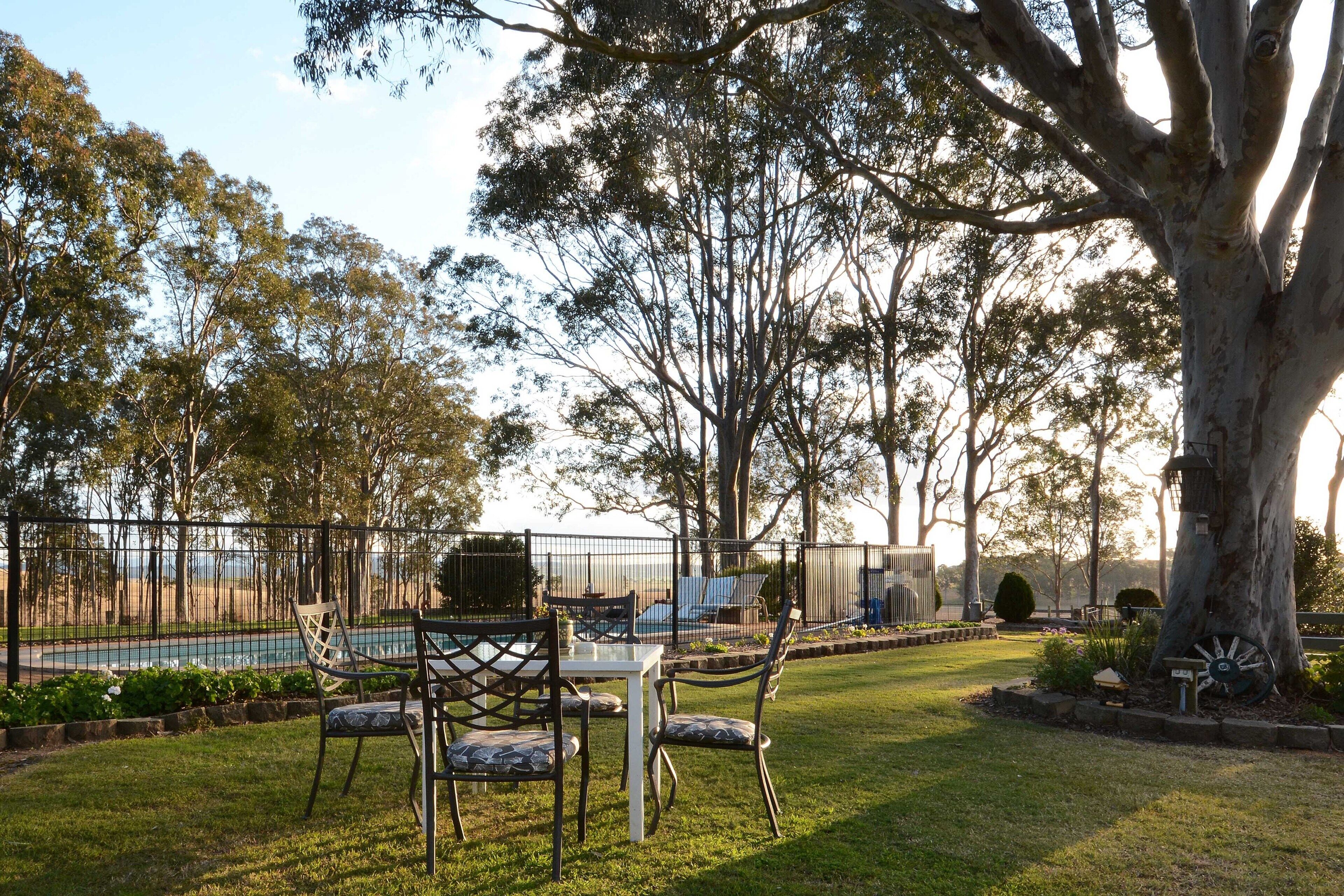 Lochinvar House is situated within Kaludah Estate, a cattle grazing property with dams and frontage to Loch Katrine (a very broad section of Kaludah Creek) and the Hunter River. While this means country air and glorious views, please remember you are on a working farm with animals large and small, including wildlife. We have taken all possible steps to ensure your safety, but please remember to stay within the general area of the accommodation, garden, lawn, pool and driveway, which offers an easy 1km return walk to our main (white) gate if you feel inclined. Our managers can provide helpful advice according to the time of year you are visiting.