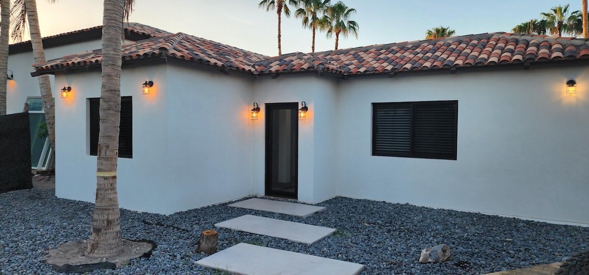 This Casita is in Costa Loreto, a community in Loreto BCS, Mx. It is set amongst a handful of exclusive villas near a quiet beach but beach access is down the street. This is a 2 Bedroom 1.5 bathroom little home in back of a 5 bedroom, 4.5 bathroom home which can be rented as well. This casita has a full kitchen but no living room. TVs are in every room including the kitchen. There is large kitchen bar/counter for eating. Enjoy a pickleball court on the property.