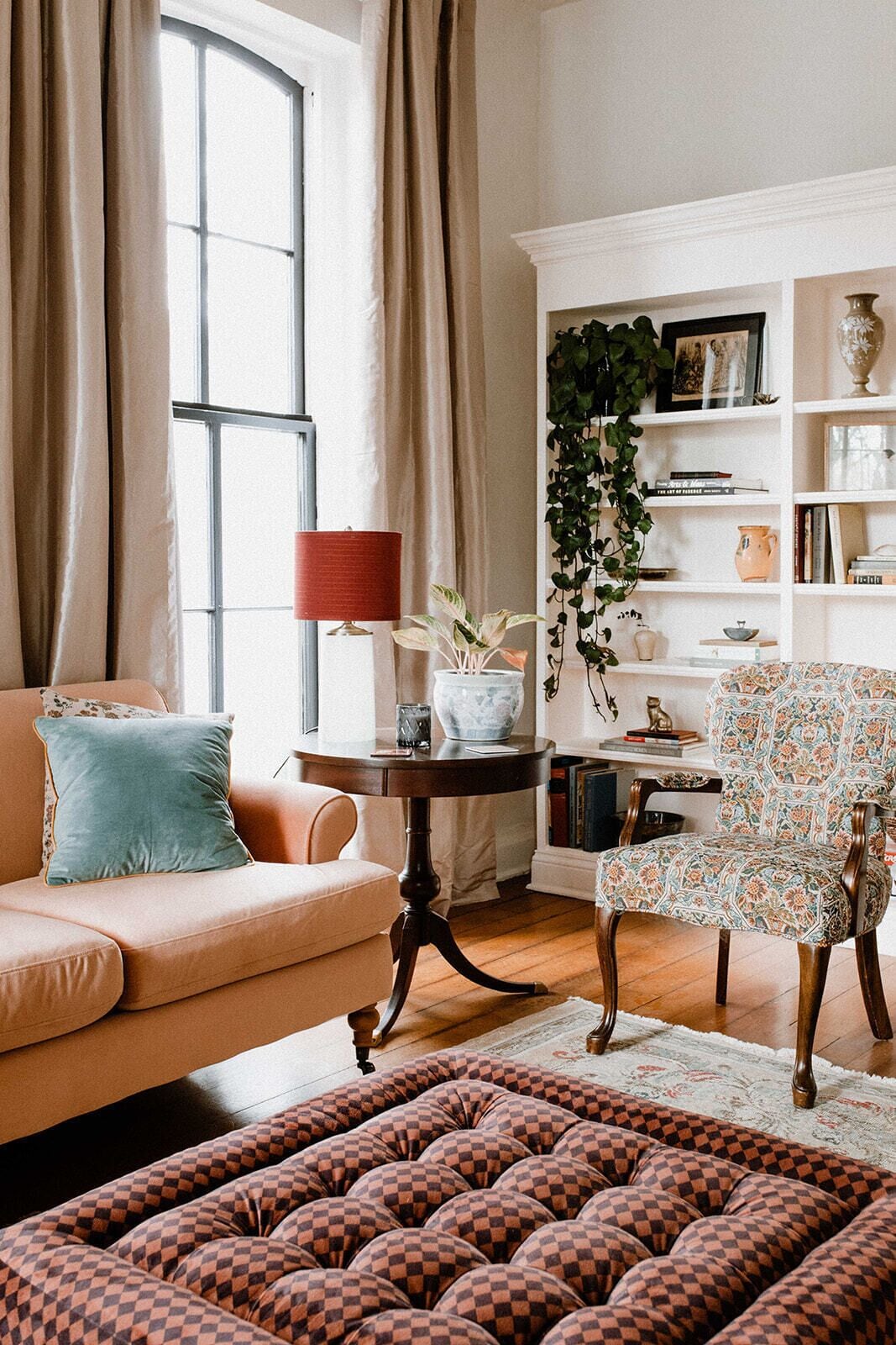 Custom drapes are by Drew Gard of Avant Gard; shades by Spindletop Draperies.