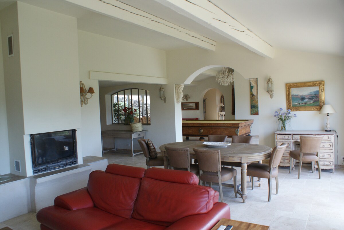 Exceptional location less than a ten minute walk to the village through vines. 200 square meters house amid pines, pool area with boulodrome, badminton, billiards.