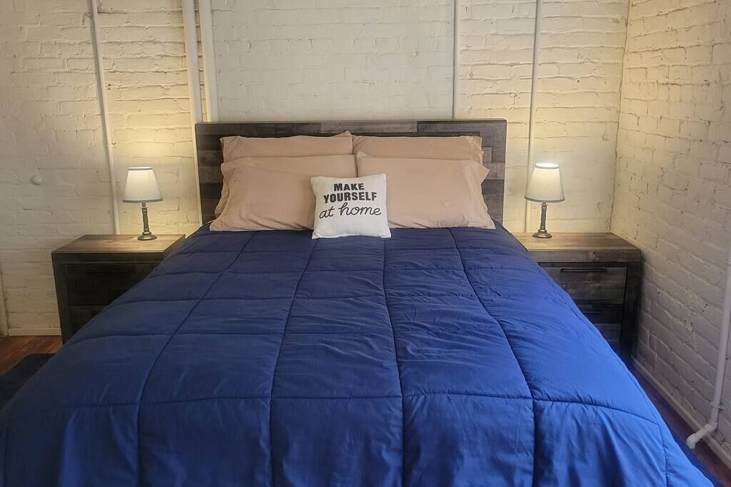 This classy & comfortablestudio apartment in an historic building in downtown Lynchburg may become one of your favorite places to stay! Whip up a delicious dinner, snuggle on the couch with a loved one, and dream the night away on this pillow top mattress! A coffee shop, professional offices and other residences share this building, making it a hub of activity during the day and a quiet oasis at night.