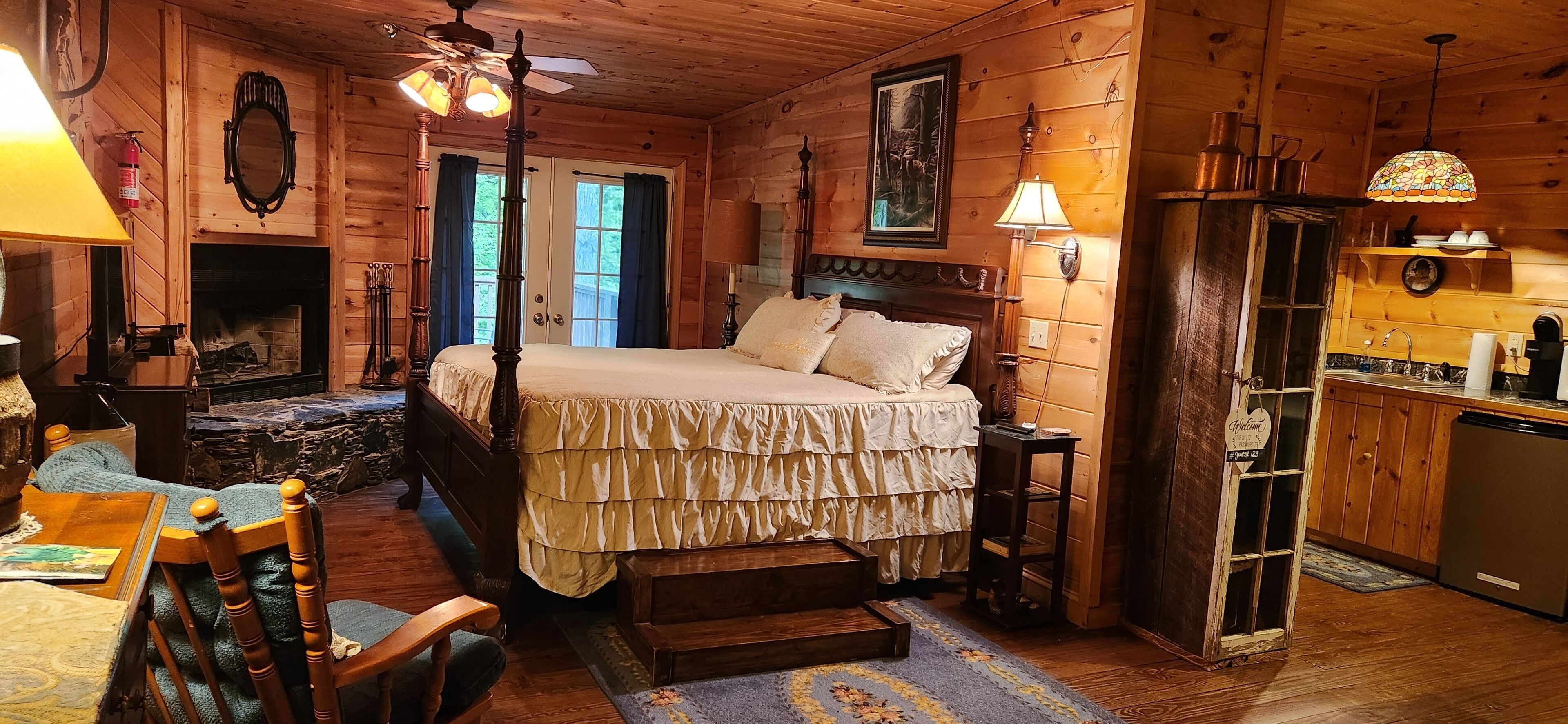 Come travel back in time to our Popcorn Sutton "Moonshiners Suite" Where we have one of Popcorn Suttons very own still, he used to make moonshine in these beautiful mountains. Located just 3 minutes from the strip of Maggie valley and a short 20 minute drive to Harrah's Cherokee Casino. Enjoy your stay in a comfortable king size bed with a 2 person jacuzzi tub and beautiful view overlook a spring fed pond with roaming elk and occasional bears. Kick your shoes off and stay awhile.