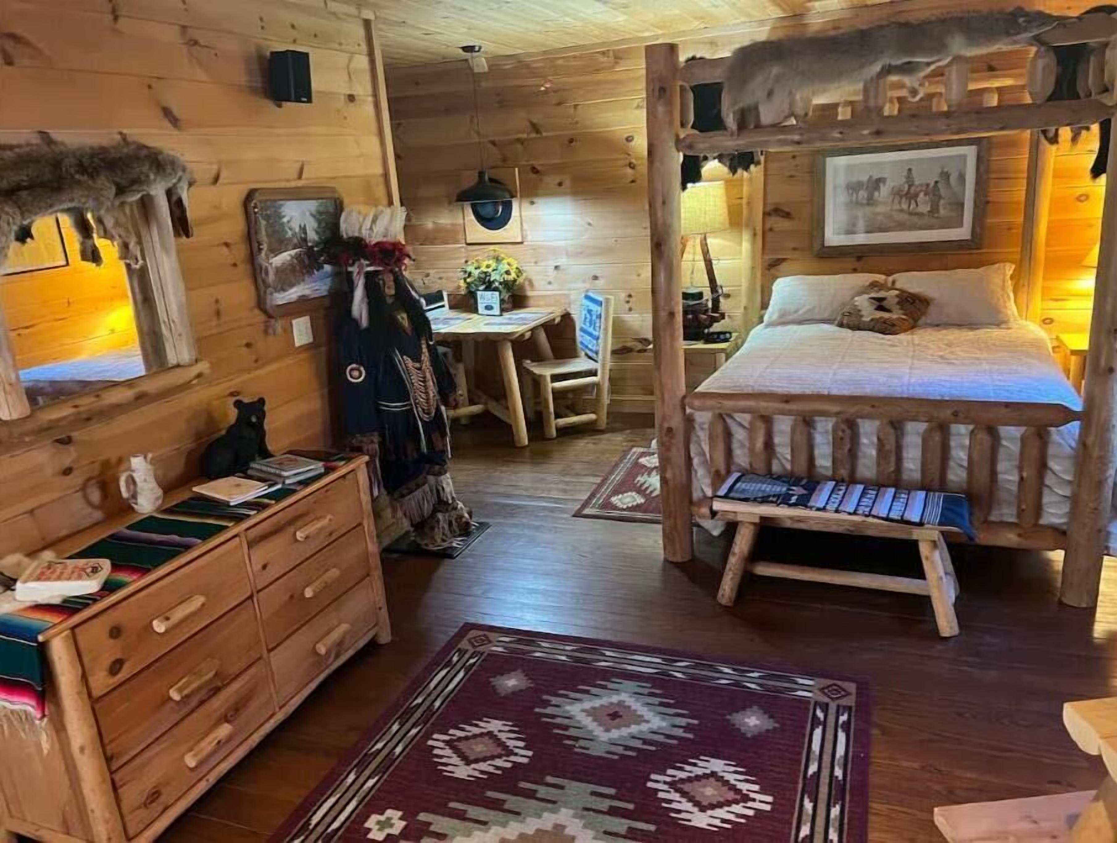Come stay with us in the beautiful Native American inspired Dreamcatcher Suite. From a private entrance over looking our stream fed pond to breath taking mountain views you won’t want to leave this charming, one-of-a-kind place.