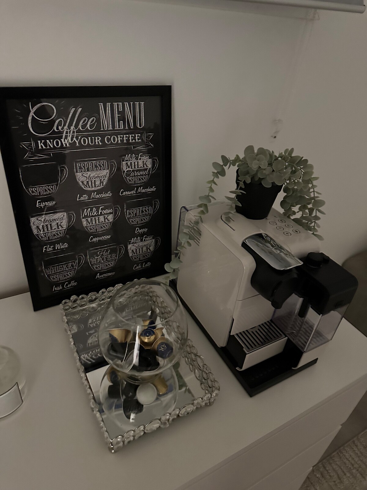 Equipped with microwave, fridge, electric kettle, coffee machine and dishes.
