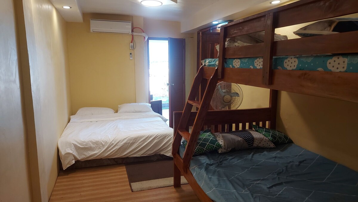 Feel at home in this transient room that is equipped with air condition, wifi, queen size bed, double deck, toilet and bath and access to garden and gazebo.