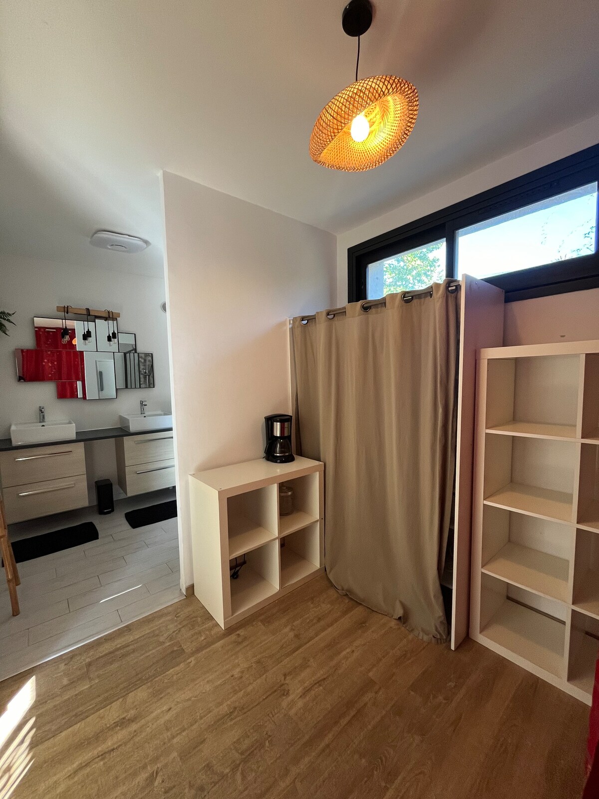 Charming cozy guest room with king-size bed, dressing room and private bathroom. The glass window opens onto a terrace with magnificent views of the pool and the Mont d 'Or tower. Quietly located, at the foot of the hill, 10 min walk to downtown. Ideal for a relaxing stay under the sun of Provence. Coffee and kettle available. Perfect for enjoying tranquility while staying close to amenities.