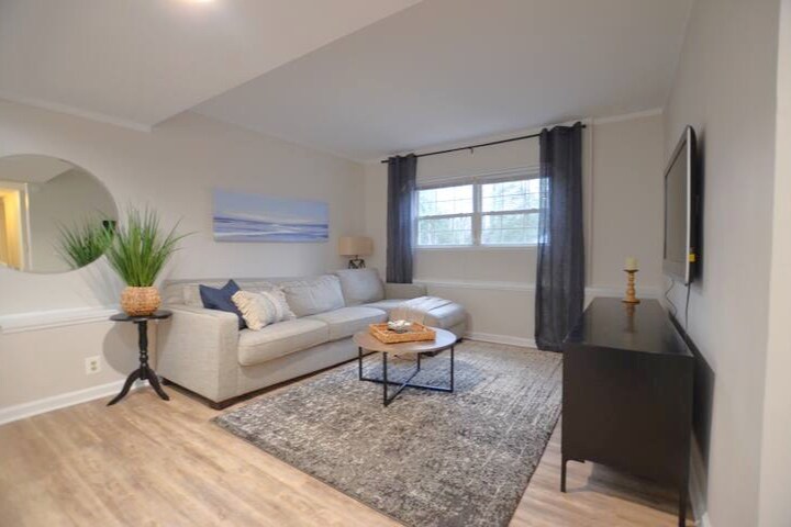 A brick walk to the front, or 2-car parking off rear alley, to shaded brick patio with steps or ramp to huge screened porch. Private entrance to open concept living room/dining room/ kitchen with vaulted ceiling, fireplace, and big flat screen TV. Two bedrooms on this level, both wheelchair accessible. Fully accessible bathroom w roll-in shower & washer/dryer. Stairs up to third bedroom w twin beds. One mile (walking) to downtown Rockville shops, restaurants, & nightlife, and Metro red line.