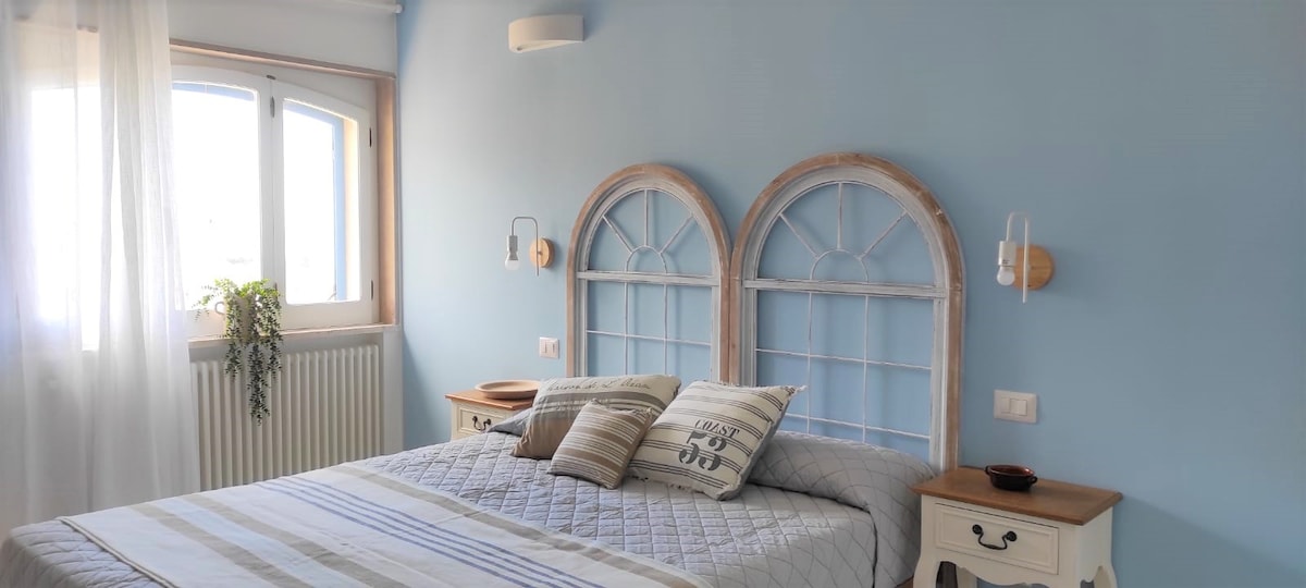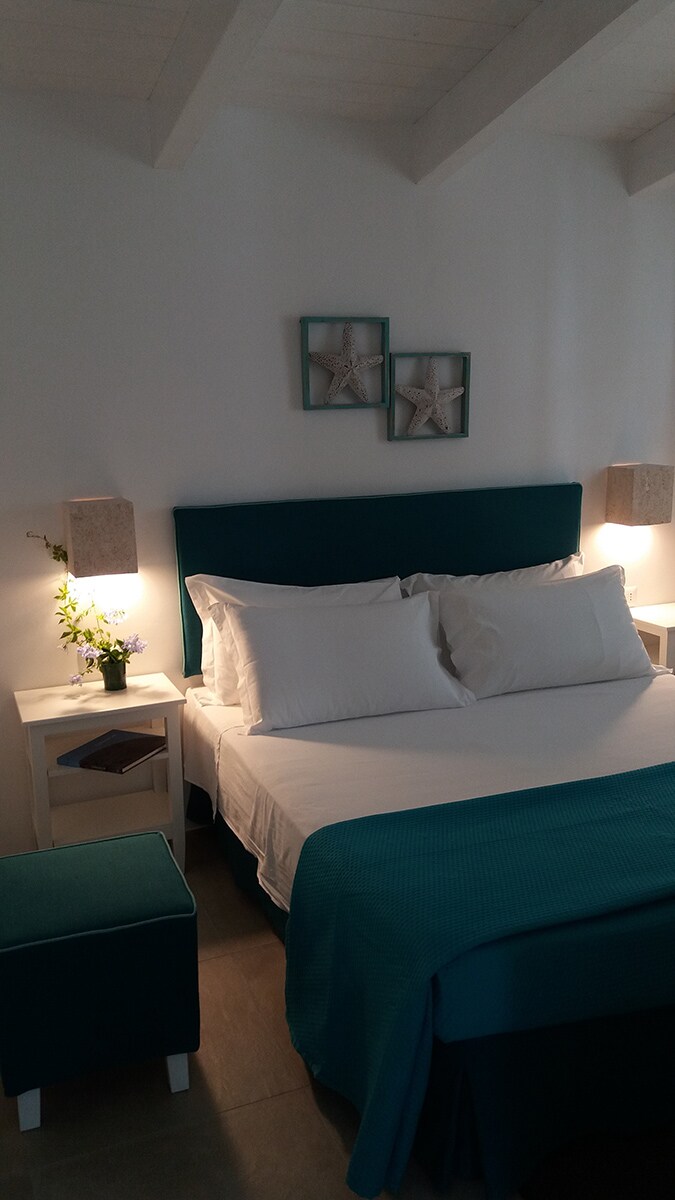 This B&B room is inspired by the love of the sea and its shades of blue. With an atmosphere of yesteryear, it is equipped with a comfortable double bed, private bathroom and modern and functional furnishings: the perfect nest to discover the enchanting beauty of the largest promontory in Italy (the Gargano) and the ideal place to let yourself be lulled by the peaceful atmosphere and authentic life of a small but characteristic town like Mattinata
