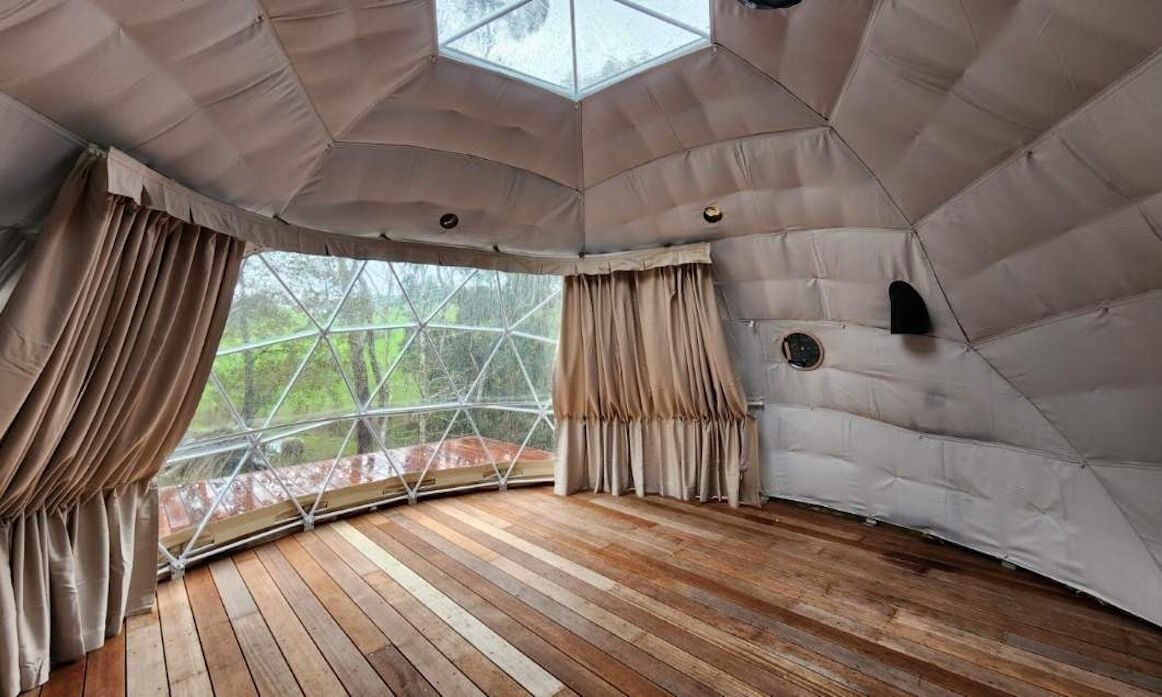 Take a stroll down a path to an opening greeted by George & Harry (miniature sheep). As you walk past the Apiary Bee Garden into Dome Mellifera. Bring your favourite local takeaway and relax in front of the open fire under the stars, before settling down in the dome in front of the fireplace under viewing the stars above as you fall asleep. Awaken to sunrise lightly glistening in through maple trees listening to cows across the paddock graze into the morning. Enjoy local plunger coffee on home made bread with the local Echunga Honey - Apis Mellifera Honeycomb Butter....