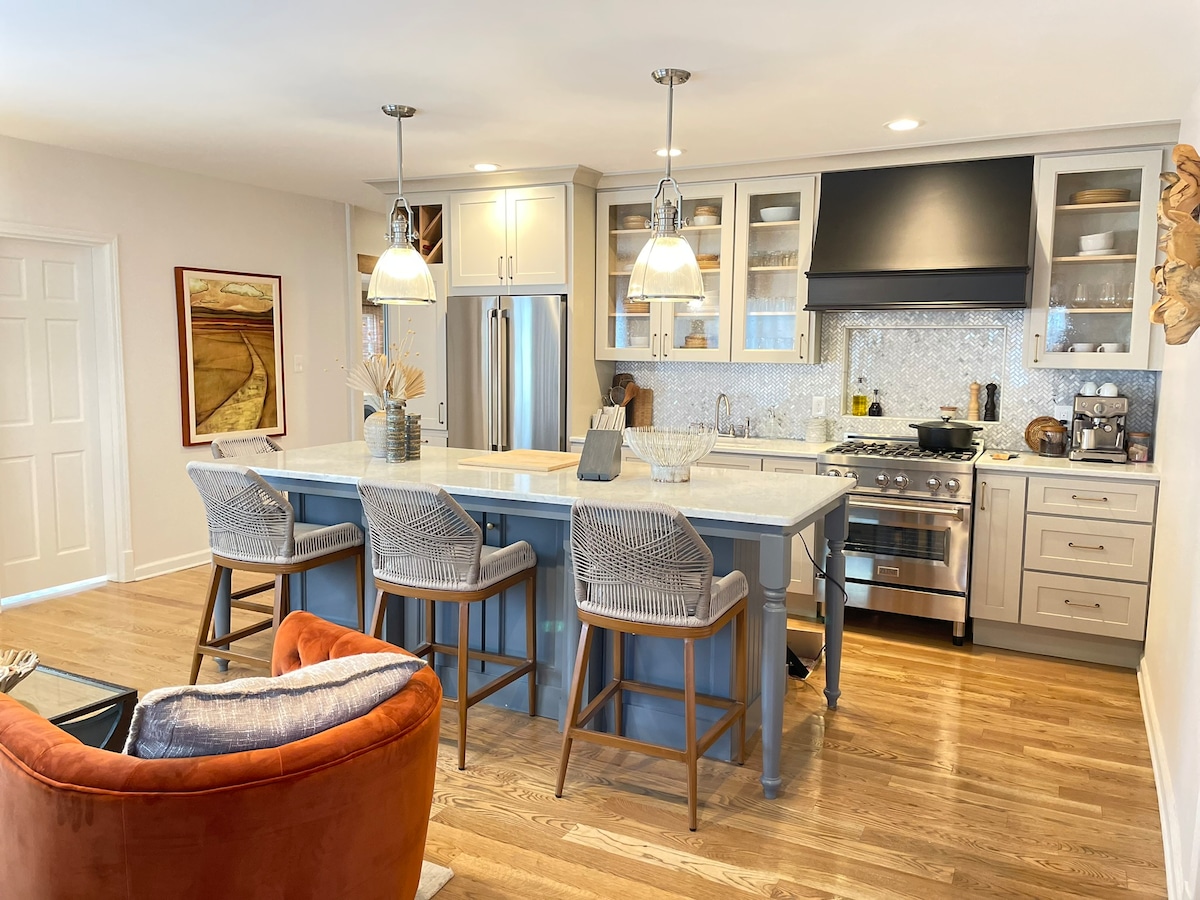 The Pool House has been completely renovated with a focus on luxury. The kitchen is exceptionally well equipped and features a high performance gas cooktop and large island with quartz countertops. You're sure to get a great night’s sleep regardless of which bedroom you chose. In the master you'll find a King bed and the second bedroom features a Queen, both with new memory foam mattresses paired with Egyptian cotton bedding. The spa like bath provides a generous walk-in shower and a towel warmer for additional pampering. A frontload washer and dryer are available in the large laundry room as well as lots of additional storage and a dedicated work space for teleworking. Additionally the apartment features smart TVs in the living room and both bedrooms. And with high speed internet and strong Wi-Fi coverage blanketing the entire property both inside and out, feel free to take that next Zoom meeting by the pool.