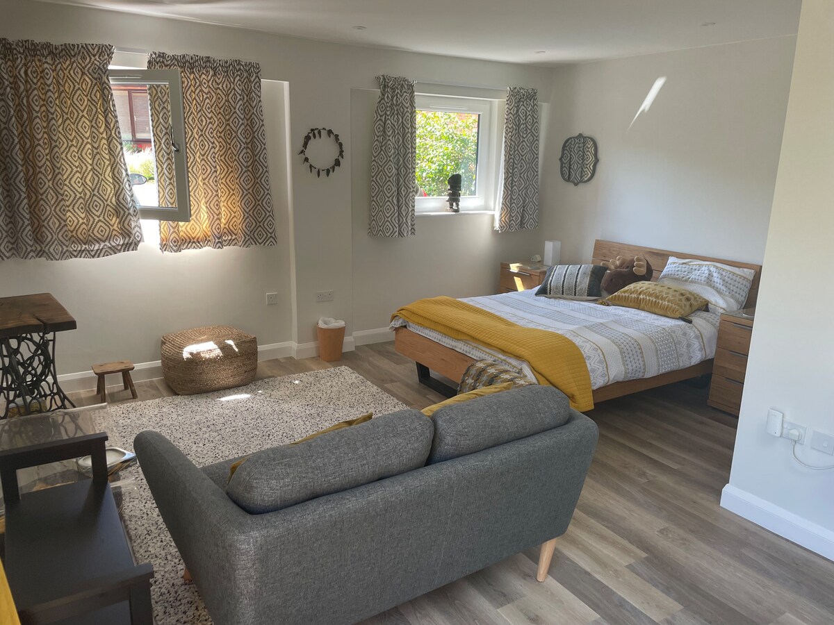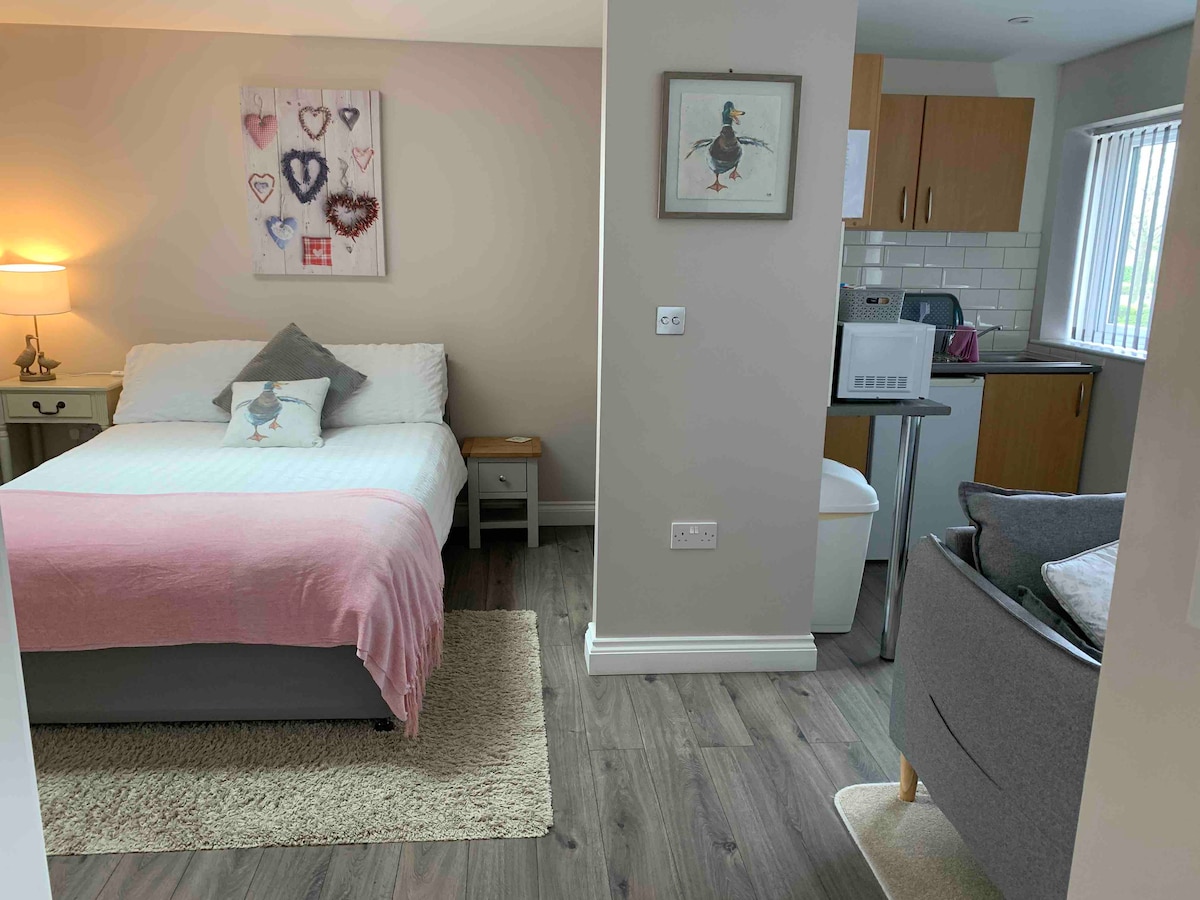 A brand new annex featuring a comfortable double bed, separate living area with smart tv featuring Netflix and all Freeview channels. Our space includes a kitchenette with fridge, mini oven, 2-ring hob, microwave and all cutlery and crockery supplied. Tea, coffee, sugar, milk and biscuits await you. There some complimentary breakfast cereal for your first morning. The bedroom features a comfy double bed with a memory-topped mattress and built-in wardrobe. The en-suite bathroom contains an electric shower, heated towel rail, toilet and hand basin. Towels, toilet rolls and basic toiletries are provided.