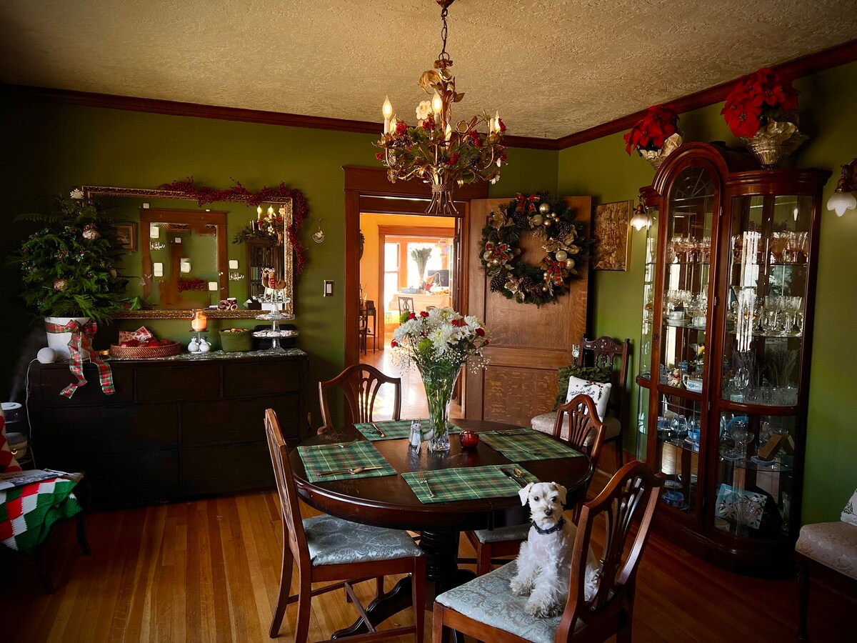 Guest has access to main floor common area’s dining room, living room, rest room and fully equipped guest kitchen. The sunroom/music room is locked. we also have an amazing backyard with multiple picnic areas pergolas fire pit fig and apple trees and our new cherry trees that are just now taking route you’ll find lots of animals deer rabbits and squirrels.