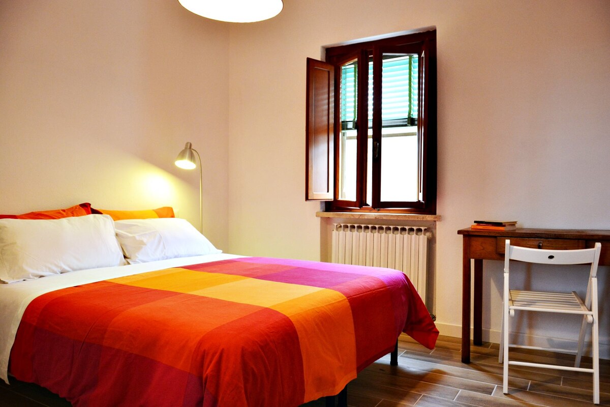 The room is located on the second floor of a rustic and recently renovated house, a few meters from the walls of the small medieval village of Montecarlo. From the windows you can enjoy the views of the olive trees that characterize the Tuscan landscape of the Lucca Hills. A few kilometers away, the beautiful city of Lucca. Florence, Pisa and the Tuscan coast are also easily accessible.