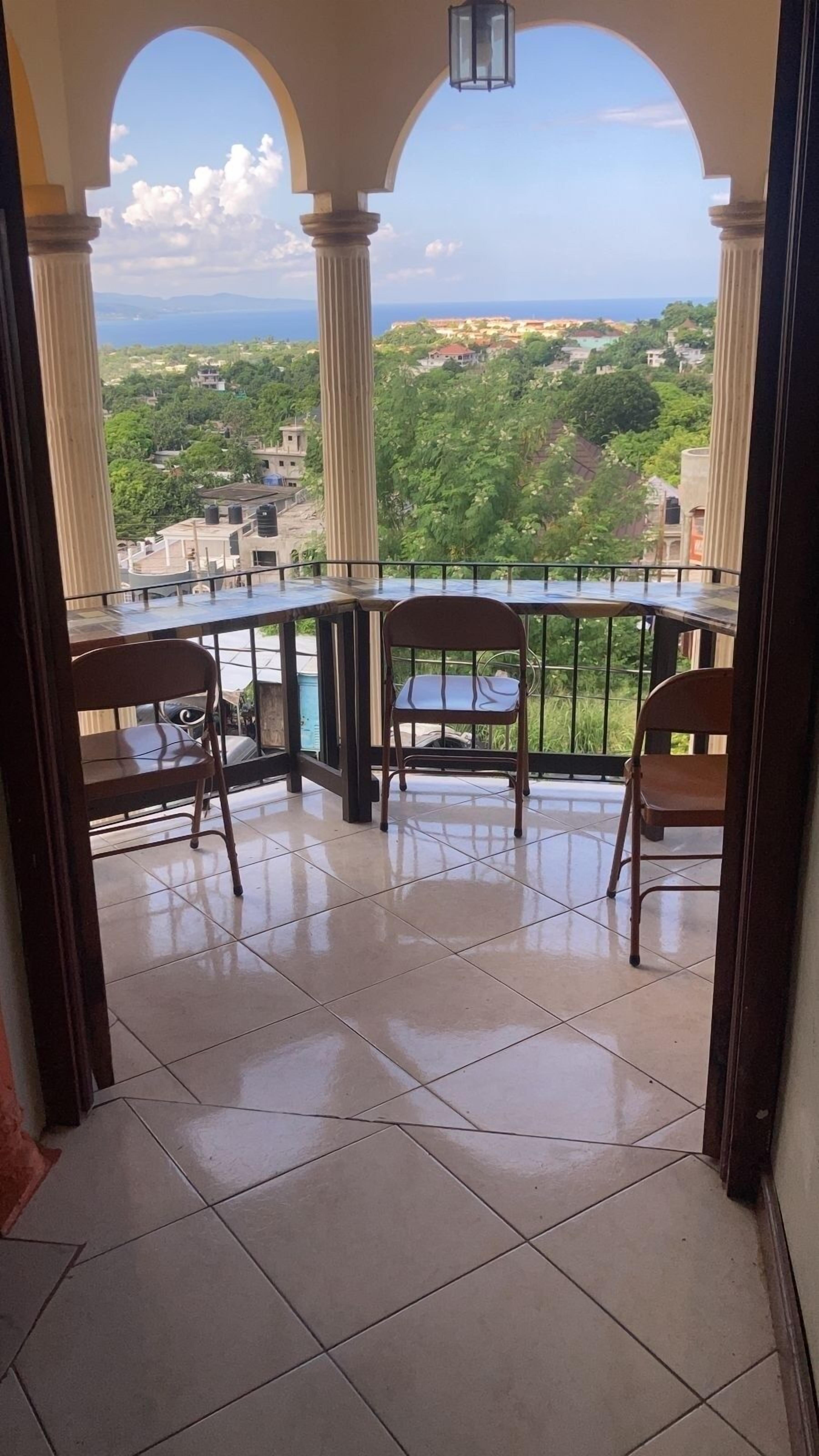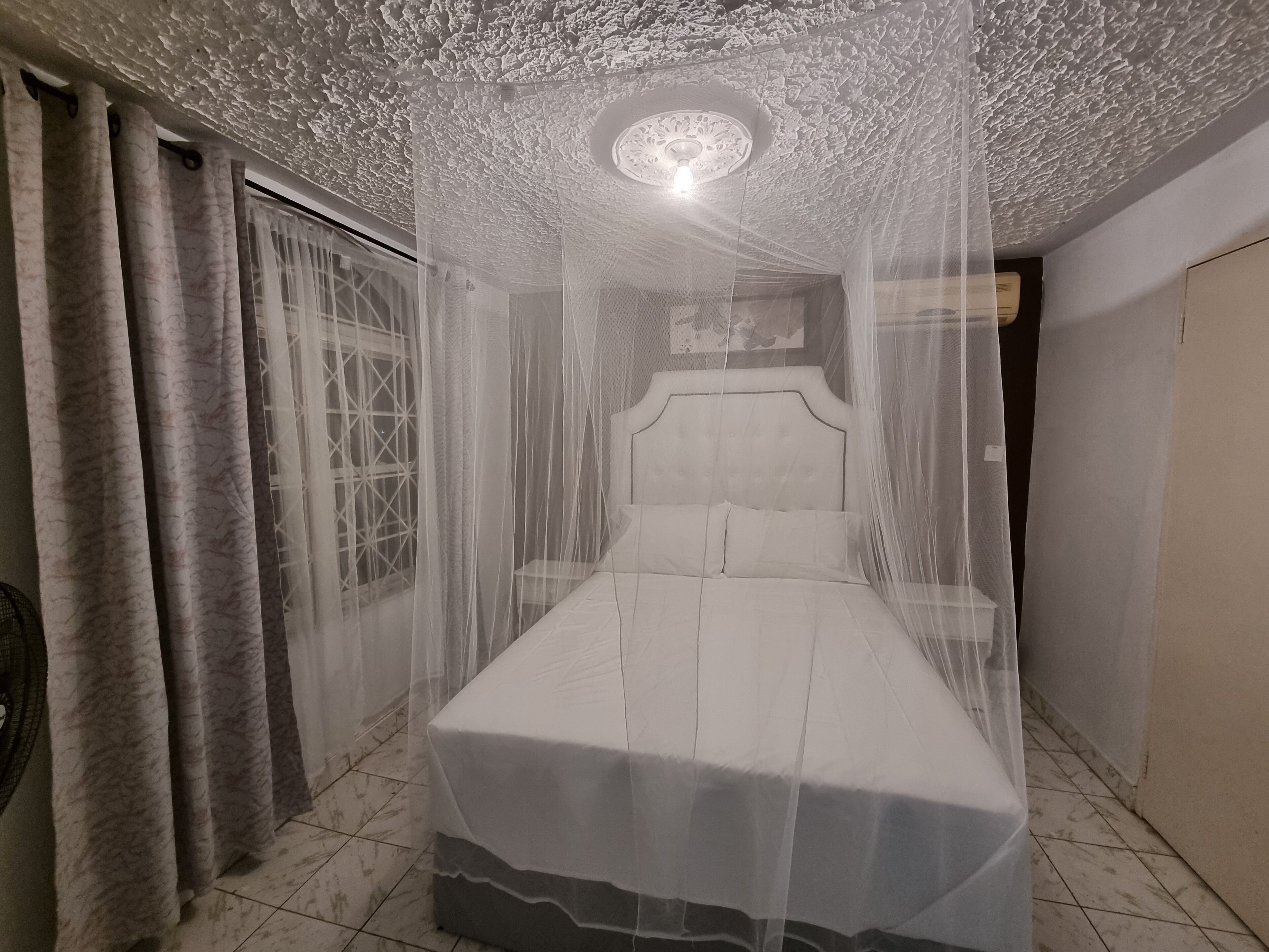 1 bed Studio very clean sleeps maximum 2, quiet and comfortable inclusive of clean towels and sheets, with small modern kitchen fitted with fridge, microwave, kettle and toaster. The bathroom, good size and comfortable bedroom with an LCD Tv, mesh windows, with a Fan for cooling, Wifi in the room and can be accessed easily from the upstairs Balcony/Veranda and downstairs in the garden, full cctv cameras on the property and parking available also, washing facilities available at a small extra cost of $1000ja per load, paid directly to host, there is also a large balcony with a lovely view of the sea which guests would also have access to at anytime day or night.