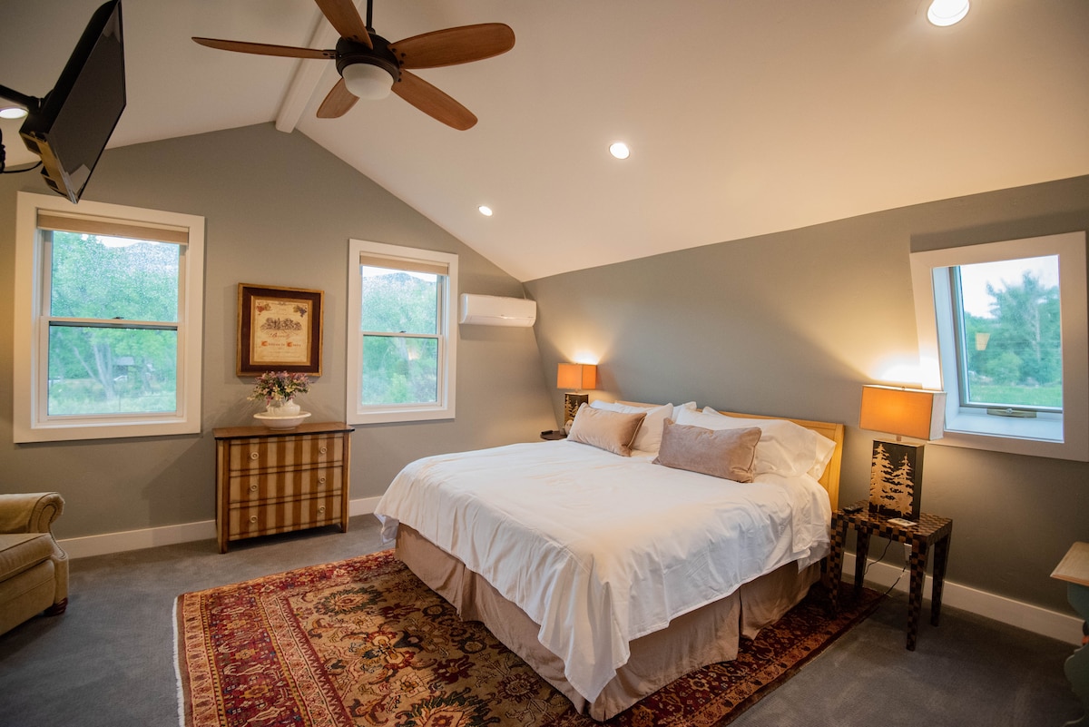 The Bunkhouse is beautifully decorated and has everything you need for a fun and relaxing stay. It is at the base of the BLM with access to a boathouse to relax on and a pond. You can also hike up to the BLM right behind our home for beautiful views.