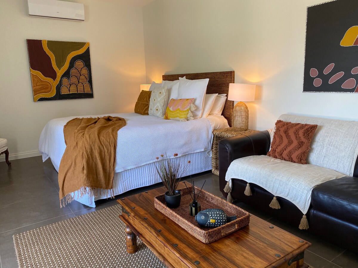 Accommodation offers 1x queen bed, ensuite WC, basin & shower. Kitchen includes fridge, kettle, toaster, air fryer and coffee machine.