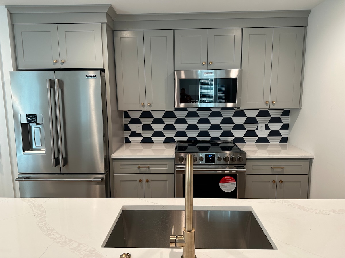 - Fully Equipped Kitchen: Enjoy a well-stocked kitchen with a farmhouse porcelain sink, quartz countertops, and modern stainless-steel appliances, including a stove, dishwasher, refrigerator, and microwave.