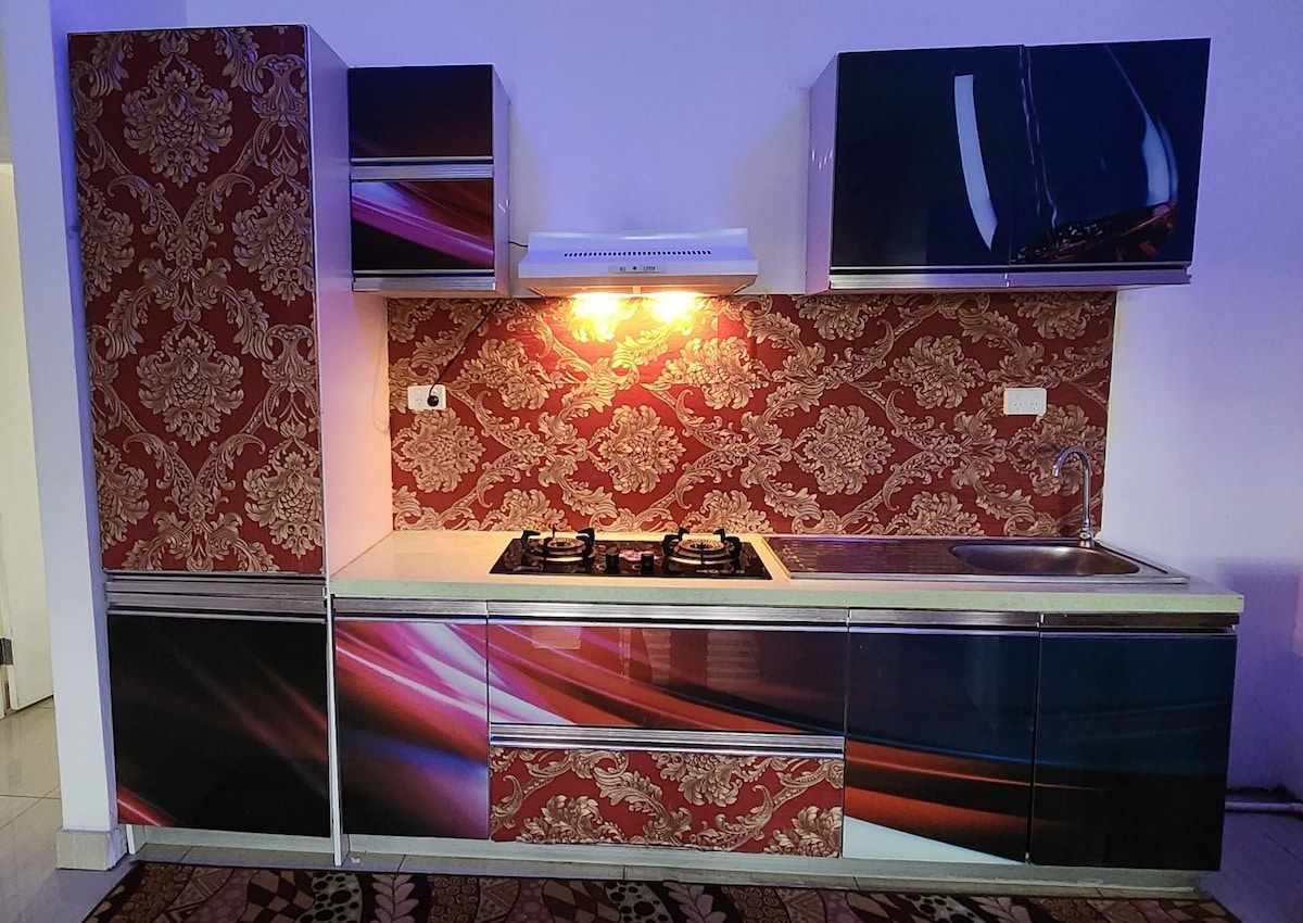 it's self contained fully furnished apartment preferred for couples, families and singles .Guest can wash their own clothes everything is provided.Feel like your own home.Small convenience store is also there on the premises. If willing to cook, guests can buy their own groceries and cook .