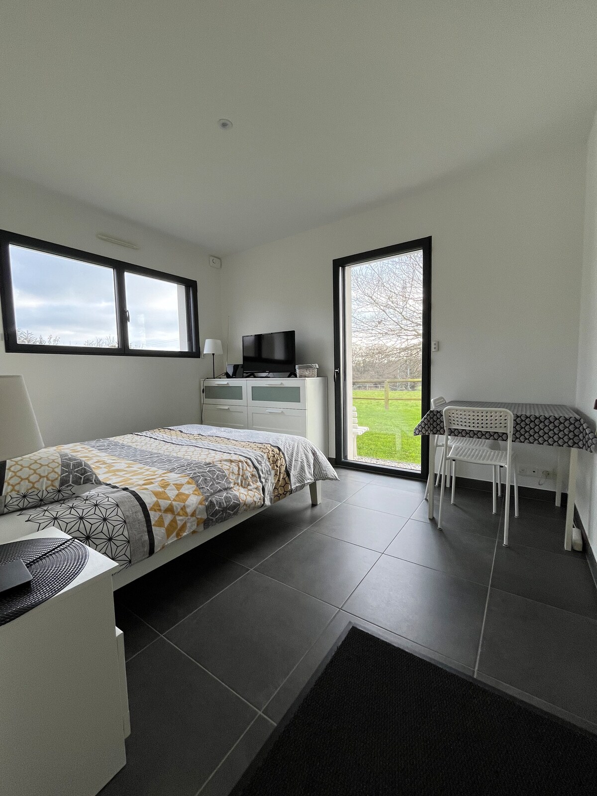 The room is in an outbuilding, quiet behind the house. It is equipped with a double bed and a sofa bed whose use generates additional costs (15€/night). The floor is reserved for owners. An optional breakfast (almost 100% organic) is served to guests who wish it. They can enjoy the common room on the ground floor, the veranda and patio to relax or work. Bicycle travelers also have access to a garage.