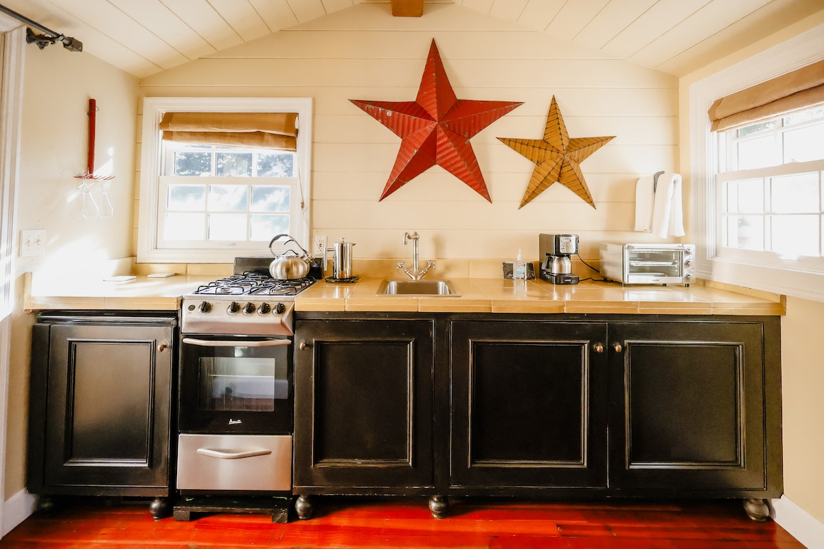 Prepare favorite foods in the kitchen fully stocked with all the gadgets you might need - including a convection cooktop, a coffee maker, and microwave. Take in lovely views from the kitchen windows, or have appetizers at the kitchen bar with seating for three. When it’s time for dinner, call your crew to the eight-person dining table for a family-style feast.