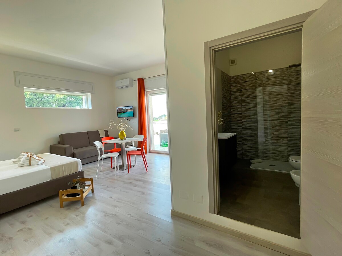 Santa Maria Al Bagno is a bedroom inside Rest House The Village, a modern and elegant structure entirely on the second floor accessible by stairs.
