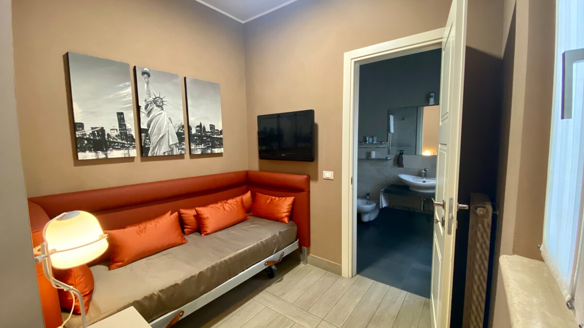 In the heart of Nettuno, a designer room equipped with all comforts: luxury mattresses, double pillow (soft/firm), smart TV with Netflix included, ComfortZone courtesy set, quick checkout, and the possibility of taking advantage of SPA routes upon reservation.
