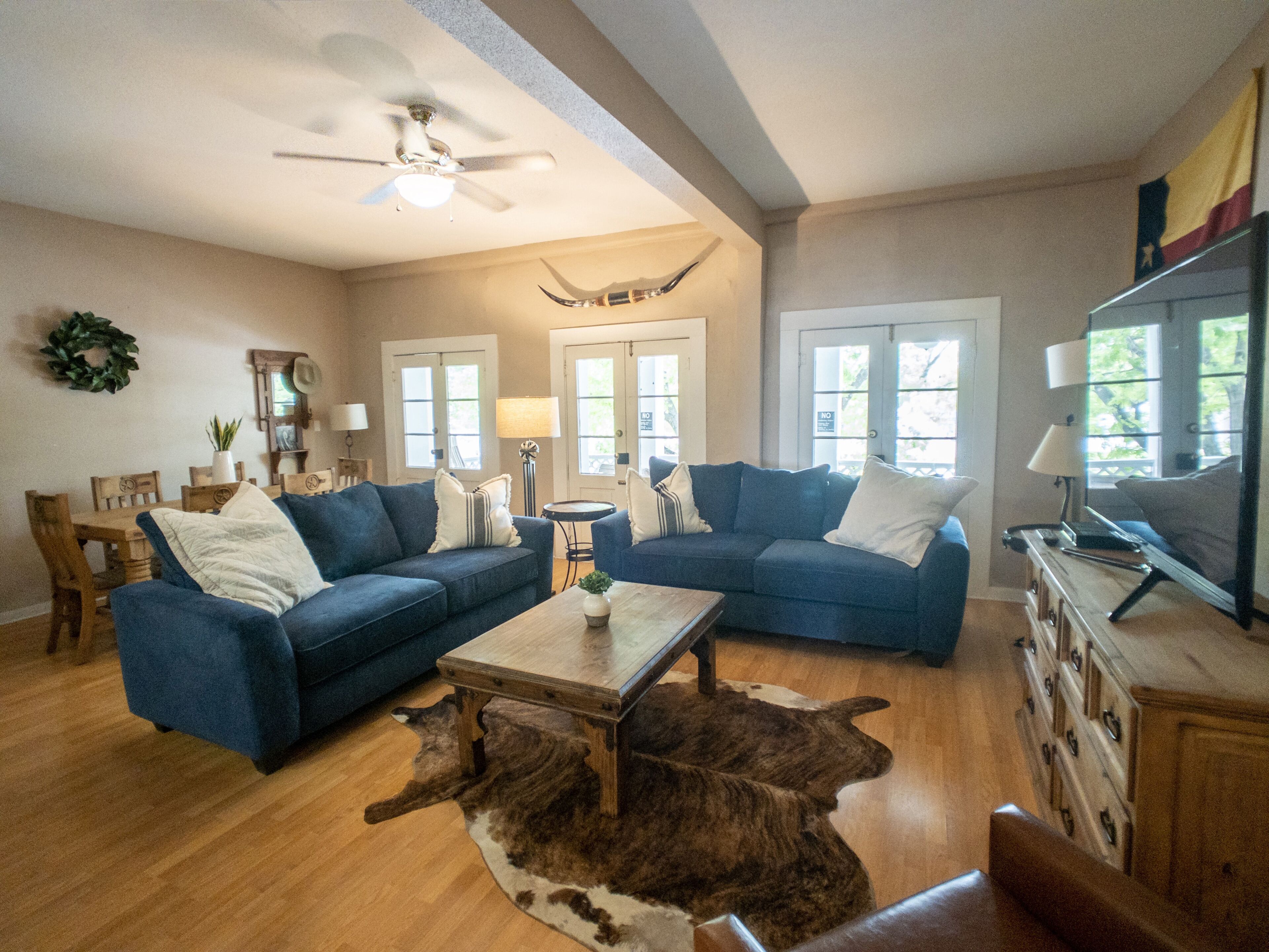 If you're a river or outdoor enthusiast, look no further—6 Oaks on the Blanco is the ultimate getaway for those seeking nature, comfort, and serenity. Nestled along the gently sloping, St. Augustine-grassed banks of the beautiful Blanco River, this tranquil escape offers guests the rare opportunity to walk straight into the water for floating, fishing, or simply relaxing as the gentle current flows by.