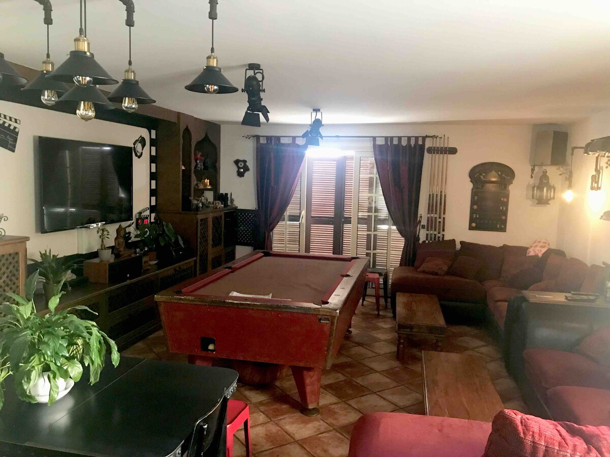 The villa has terraces with dining area,swimming pool , living room with pool table, bathroom and shared toilet ( shared for 2 bedrooms), kitchen to share.