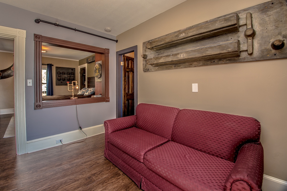 A pass through door is also present for this two room experience! Can be locked or opened for you to enjoy the full size of this dual room.