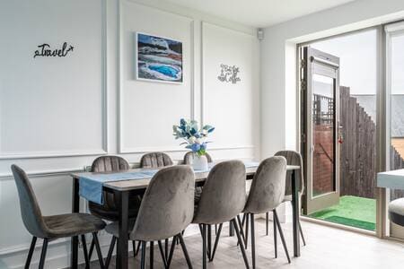 PRIVATE GATED GARDEN: The Voyager features a beautifully designed private, gated garden that offers a versatile outdoor space for guests to enjoy. Whether it's for dining alfresco, relaxing after a long workday, or taking a quiet moment with a cigarette, the garden provides the perfect setting to unwind. With comfortable garden furniture and a serene atmosphere, it’s ideal for watching the sunset or enjoying a lazy off-day in a pleasant, thoughtfully landscaped environment. This outdoor space is an added touch of comfort that enhances the overall experience for your team.