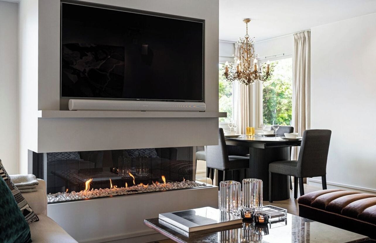 The fire pit is on the terrace that you can fire up for after-ski.