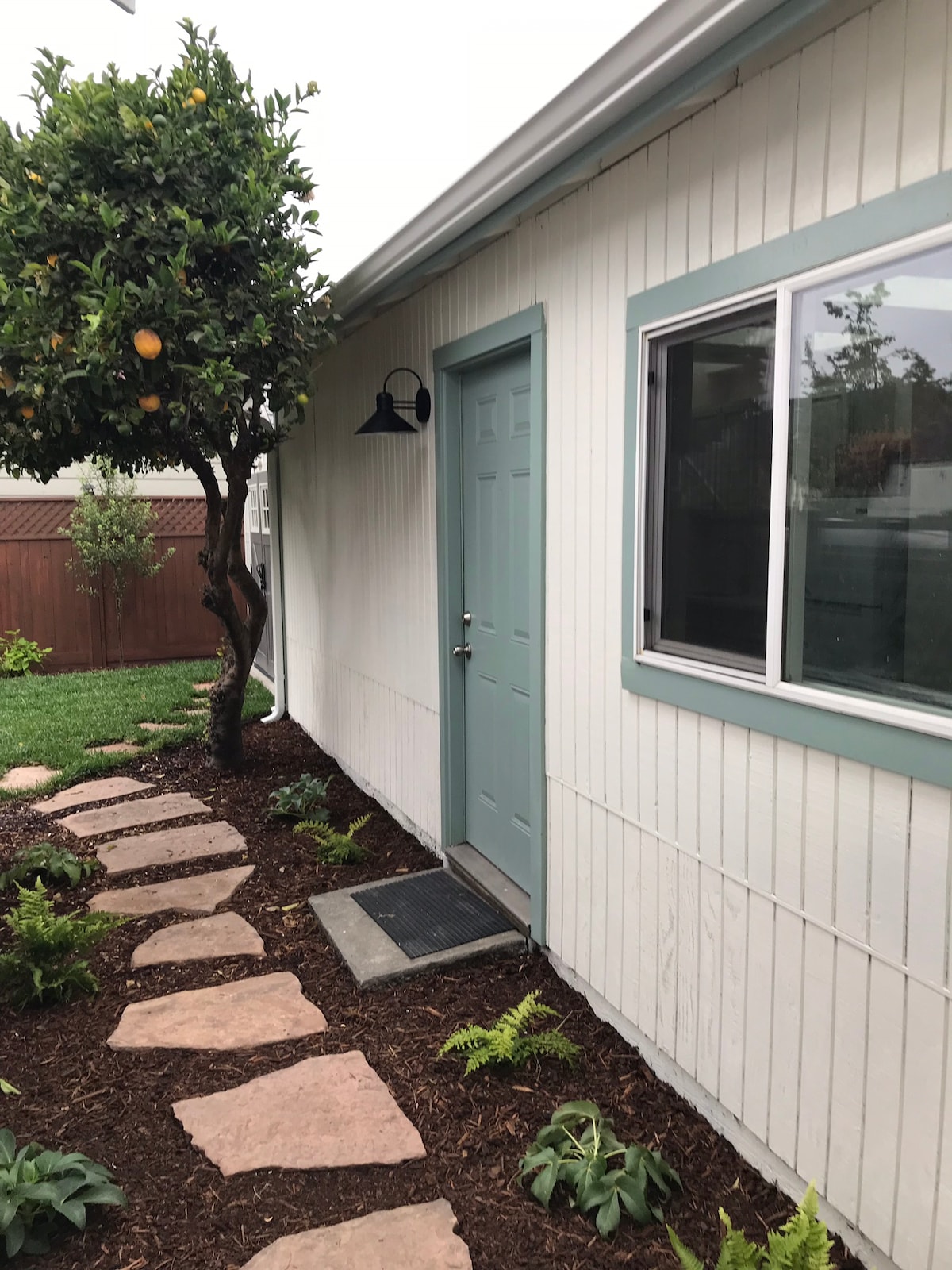 The space is calm and serene in the back garden of the property. The kitchenette is brand new with quartz countertops, microwave, mini oven, hot plate, fridge and all cookware/ dishware. You will also enjoy a beautiful private bathroom with a rain showerhead and crisp, clean towels. In the main space you will find a desk, a comfy queen bed, and a flat screen TV with Netflix. This cottage fully furnished and is great for a relaxing stay in the Bay Area, or can rented long term for students and travel nurses. Laundromat is a one minute walk from the cottage at the end of our block for longer stays.