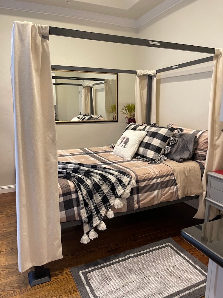 All the furniture and bedding are from Pottery Barn. The bedding sets are washed and sanitized after each guest leaves. Other areas are not shareable. Please understand that we don't wear shoes in the house. Slippers will be provided. Wearing socks is fine. If you want to bring a pet, please let me know. I will try to accommodate your request. But my place is not suitable for big pets.