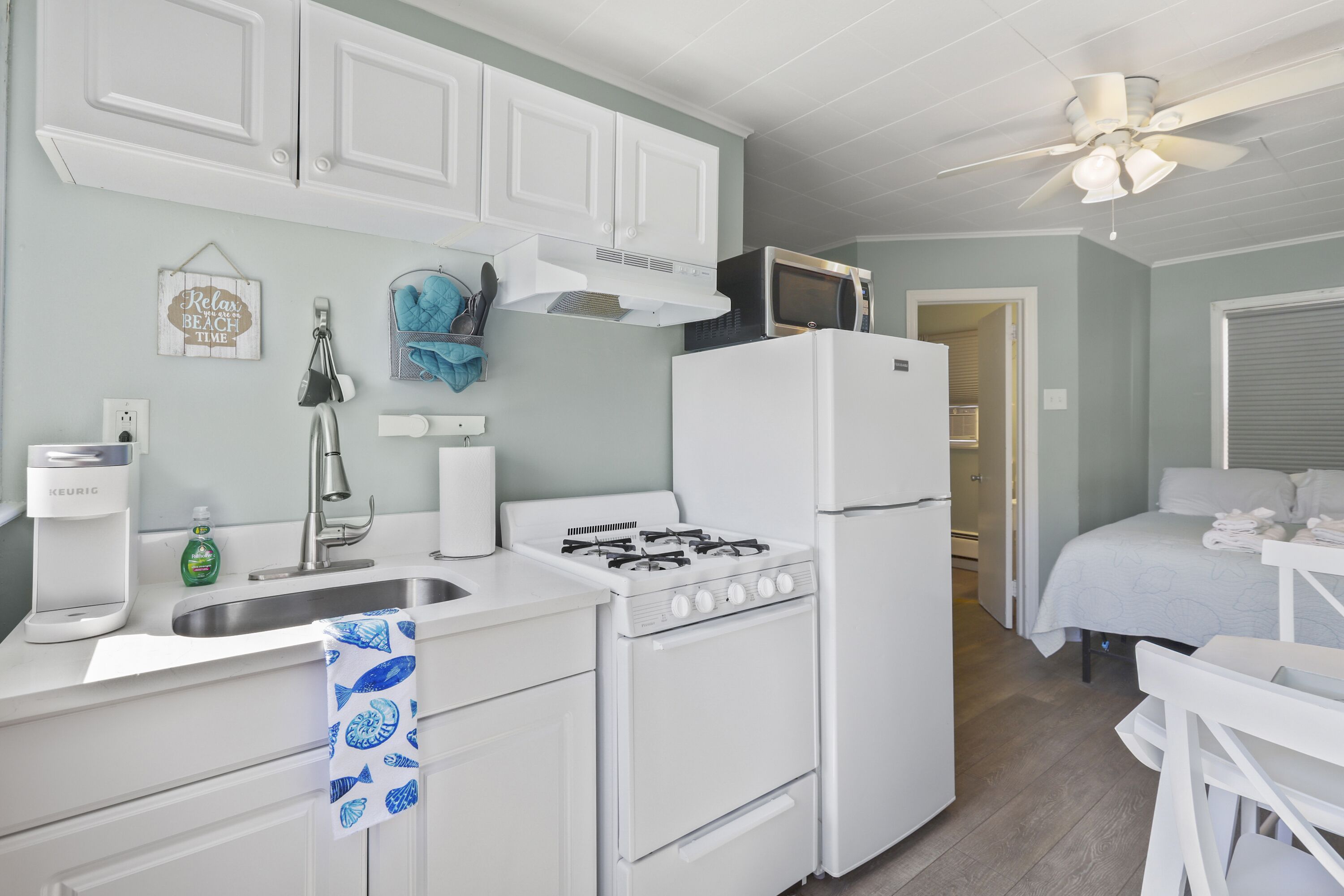 B Cottage features a queen size bed, private bathroom, flat screen cable TV, Blue ray player, WiFi, full kitchen, AC,