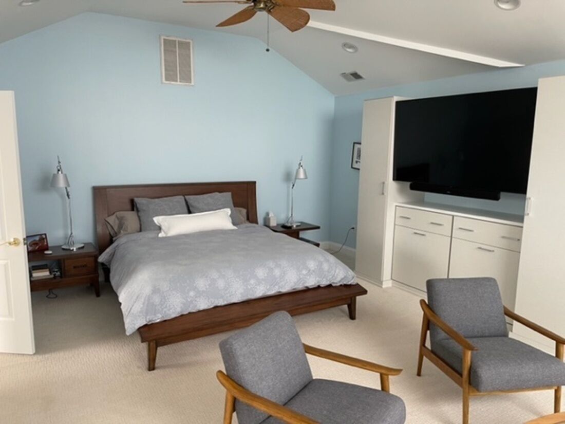Flat screen cable TV, Blue ray player, WiFi, AC, and private bathroom