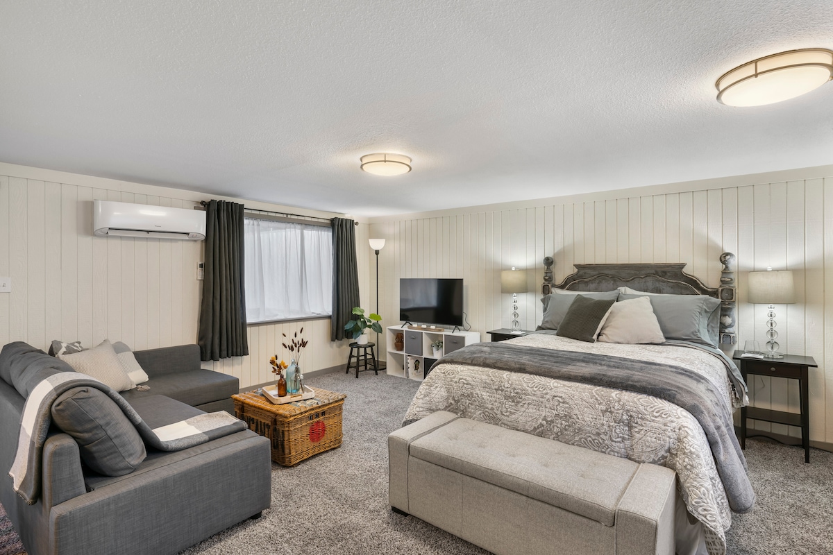 This space is well designed for nice stay that is peaceful rest. This room has free WI FI and TV, electric Fireplace for just the perfect setting during any season.