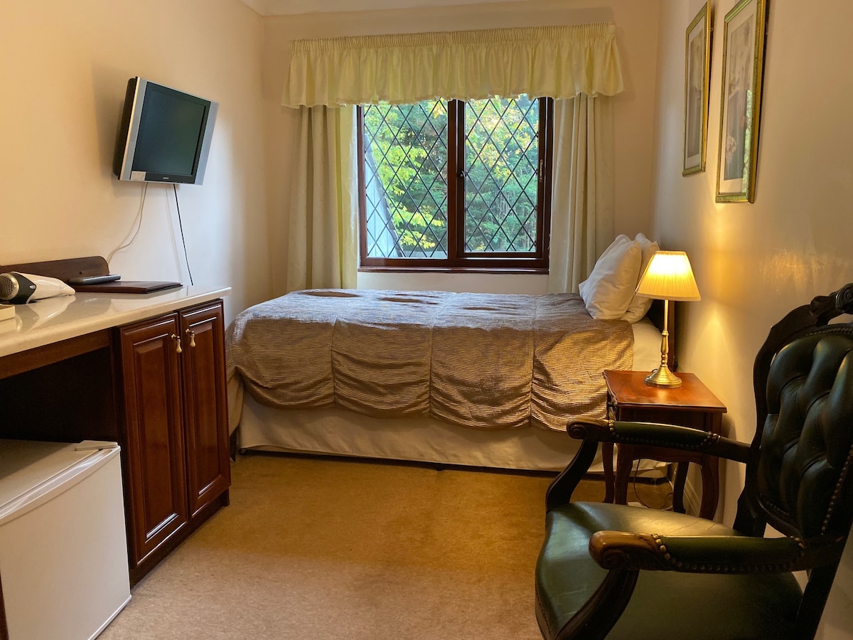 A single ensuite room decorated in the Cotswold style, with wireless broadband Internet, complimentary hospitality tray with tea, coffee, chocolate, Horlicks and biscuits, fridge with UHT or fresh milk and spa water.