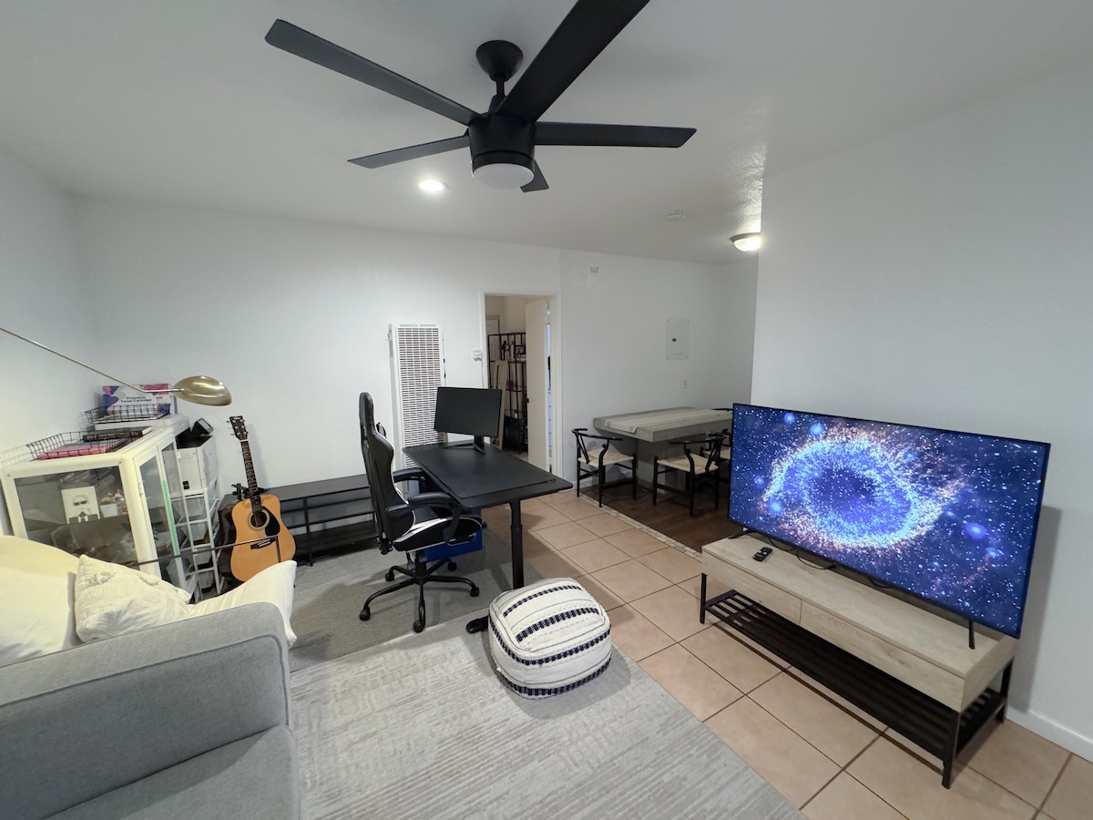 Cozy and Modern space in Pasadena. Has everything you need for a comfortable and convenient stay - whether you're traveling as a couple or with a small family, this studio is perfect for you! With ample space for two people or a family of four with little kids.
