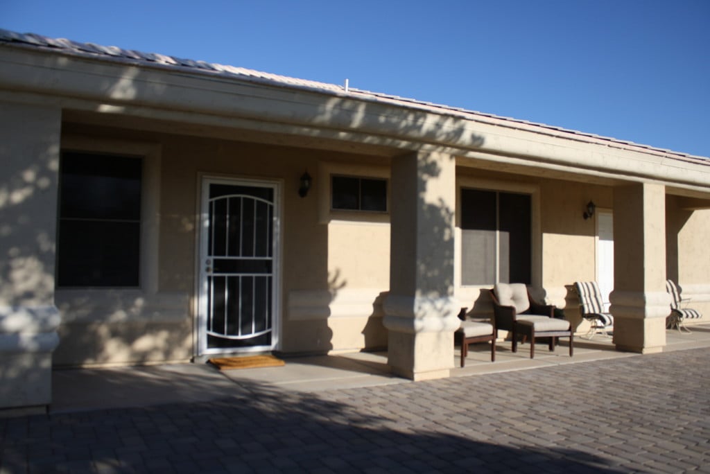 260 sq ft Studio apartment with private entrance, kitchenette and bath. Queen size bed with 3” topper, microwave, fridge, full mirror, step in shower. Please do NOT enter privacy gated areas! Citrus is ripe December thru February. Please help yourself. Offstreet parking at your doorstep, breezeway w/ outdoor dining. Close to State Farm Stadium & Westgate entertainment district. Approx 13 miles to downtown Phoenix.