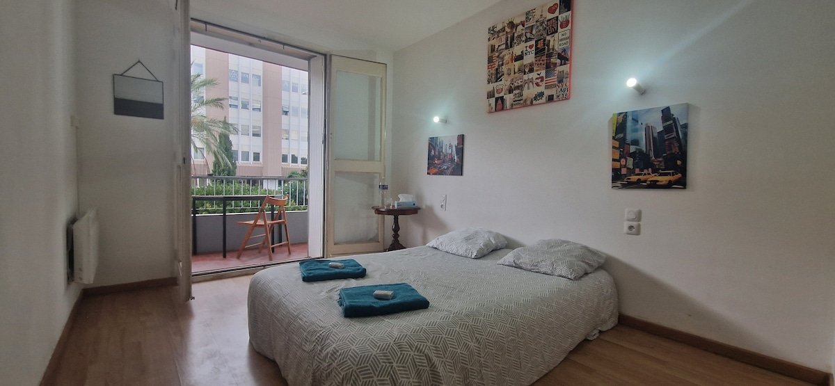 Welcome to my simple but cozy room, offering sea views and a sunrise to enjoy from the balcony. The kitchen is equipped and the Wi-Fi, via fiber, is smooth. Located close to a university, bike path, pool with jacuzzi and large park, where sport and nature (watch the ragondins!) mix. Free parking included.