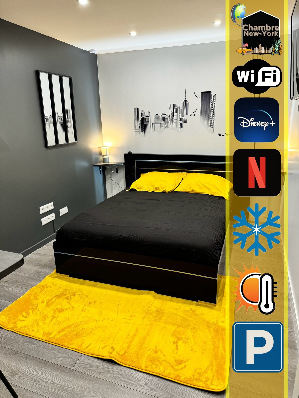 Nice, clean and bright room in a quiet and pleasant apartment. Tastefully furnished: double bed, storage, modern decoration. Ideal for a single person (student, intern, or travelling worker).