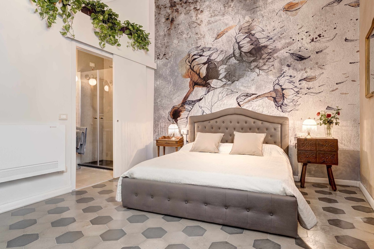 The Room Sabbia of Casa Rowe B&B is located in an elegant historical building in the center of Pistoia.
