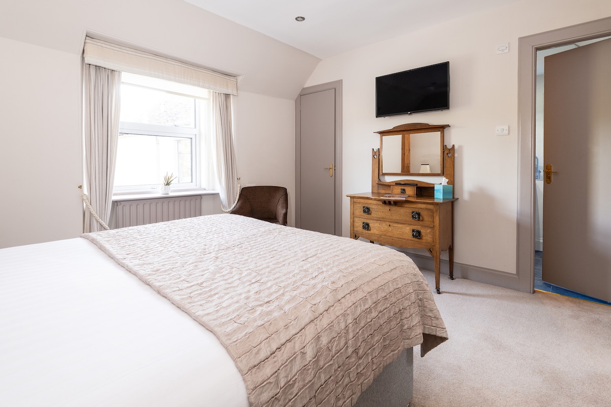 This comfortable upstairs double room has en-suite, tv and seating area. It also has a personal fridge in the hall that provides continental breakfast snacks to set you up for exploring the beautiful surroundings. Located near parking facilities.