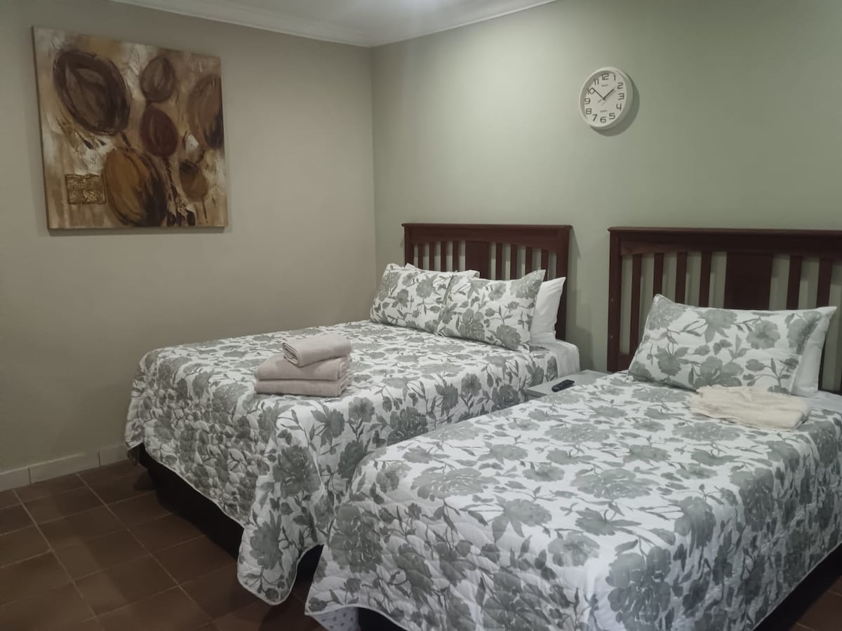 Blue Haven guesthouse is a Haven away from home. We understand that when traveling, you need a secure and safe space to put your head down for the night. And that is what we love providing. Good, clean accommodation at a reasonable price. This room has three single beds, en- suite bathroom with shower and toilet, kitchenette for heat and eat with microwave, fridge, utensils, and sink bowl. Also has a flat screen TV.