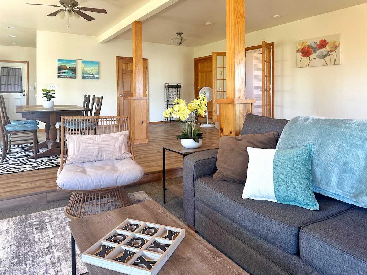 Our Garden House Guesthouse is an Accessory Dwelling Unit (ADU) and sits on a peaceful 1 acre in a nature setting. The detached guesthouse is fully furnished and has been completely remodeled with high end finishes and appliances. New luxury vinyl floors, quartz countertops, new sinks, fixtures, and fresh paint. The guesthouse is 500sqft and includes access to a private beach trail.